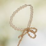 Meet Lullaby Ā Pearl necklace. Serving you a hint of clean white and ribbon details. These charming crystals and pearl will shine to complete your look.