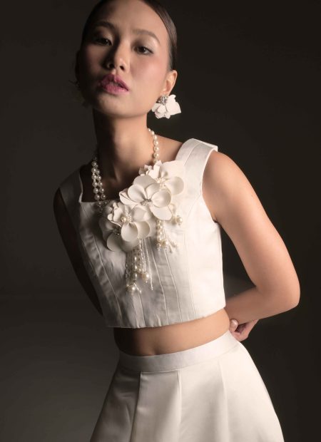 A necklace with flowers that look blooming with pearls as the center of attention gives the impression of grace and elegance.